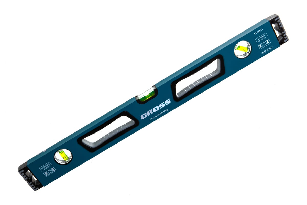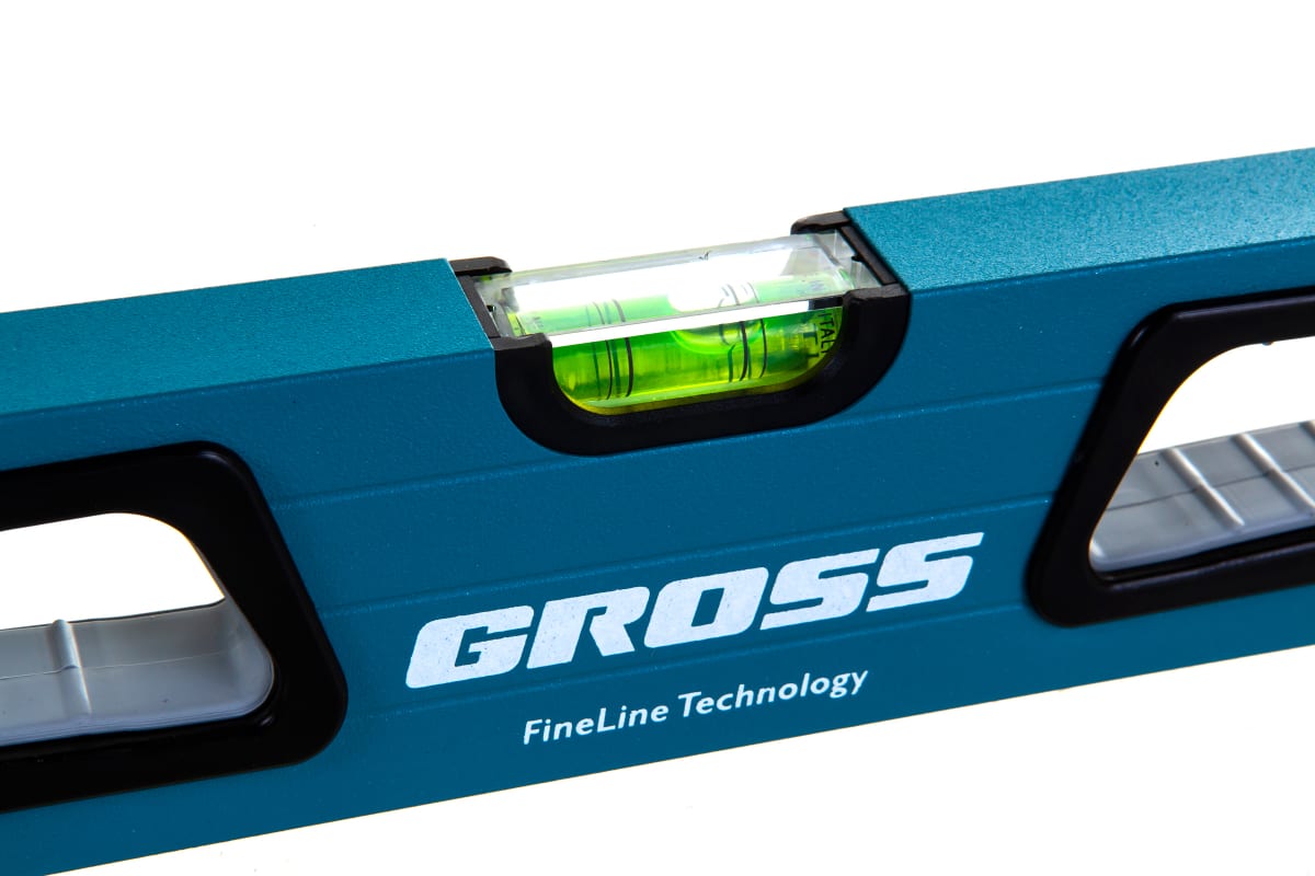 Алюминиевый уровень 600 мм, усиленный с ударопрочными заглушками, рукоятки, 3 глазка GROSS 34326 подойдет для эксплуатации в сложных, стесненных условиях.