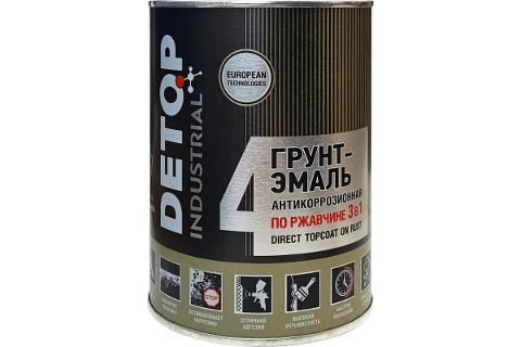 Грунт-эмаль DETOP по ржавчине 3 в 1, коричневый, RAL 8016, жестяная банка 750 мл выполняет функцию преобразователя ржавчины, антикоррозионного грунта и декоративной эмали.