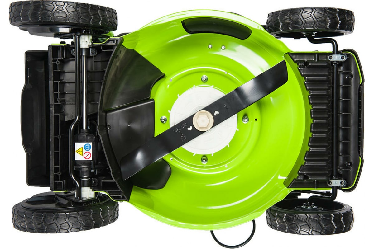 Надежность. Косилка оснащена бесщеточным электрическим двигателем, который отличается высокой мощностью, экологичностью, низким уровнем шума и простотой обслуживания.