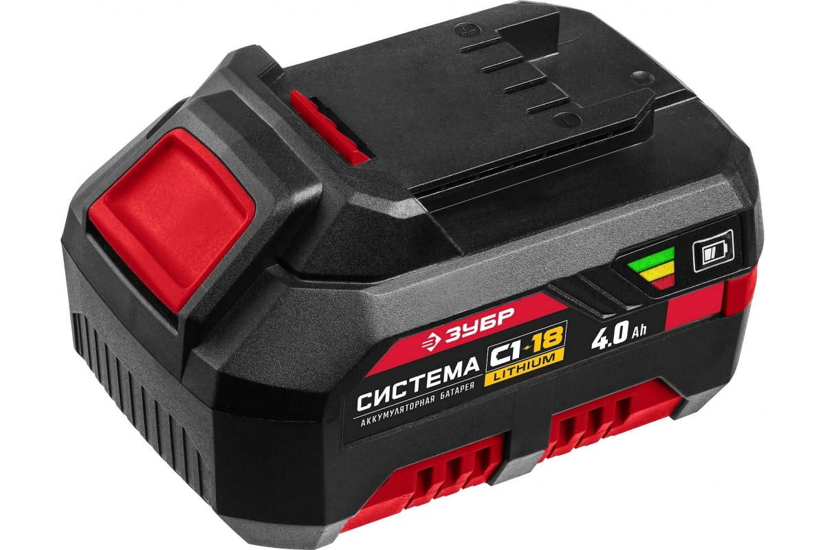 - Аккумуляторная батарея ЗУБР АКБ-С1-18-4 совместима с шуруповертом, ударным шуруповертом, гайковертом, садовым бесщеточным инструментом.