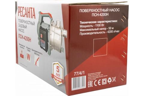 Поверхностный насос Ресанта ПСН-4200Н 77/4/1 предназначен для подачи под давлением чистой воды в дом, для орошения сада и огорода. Вода не должна содержать абразивных или волокнистых, а также химических составных частей, которые могли бы повредить материал деталей насоса.