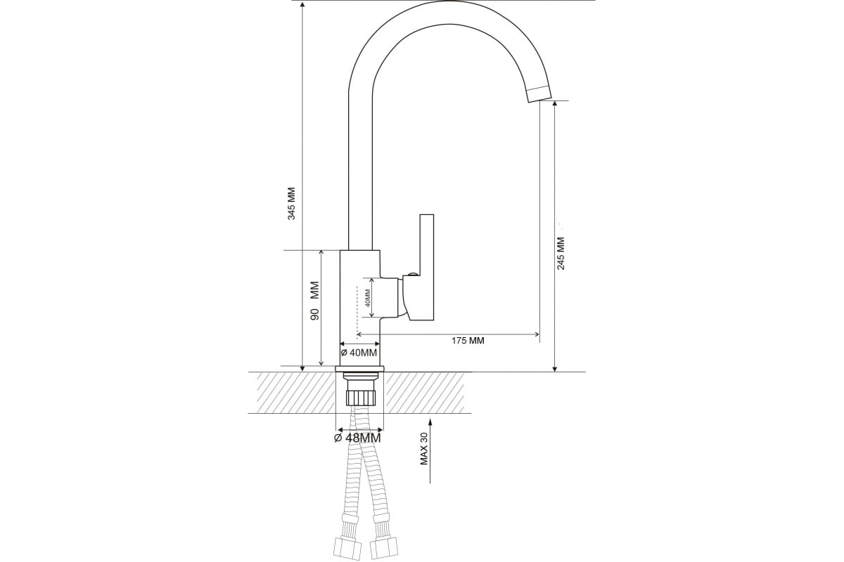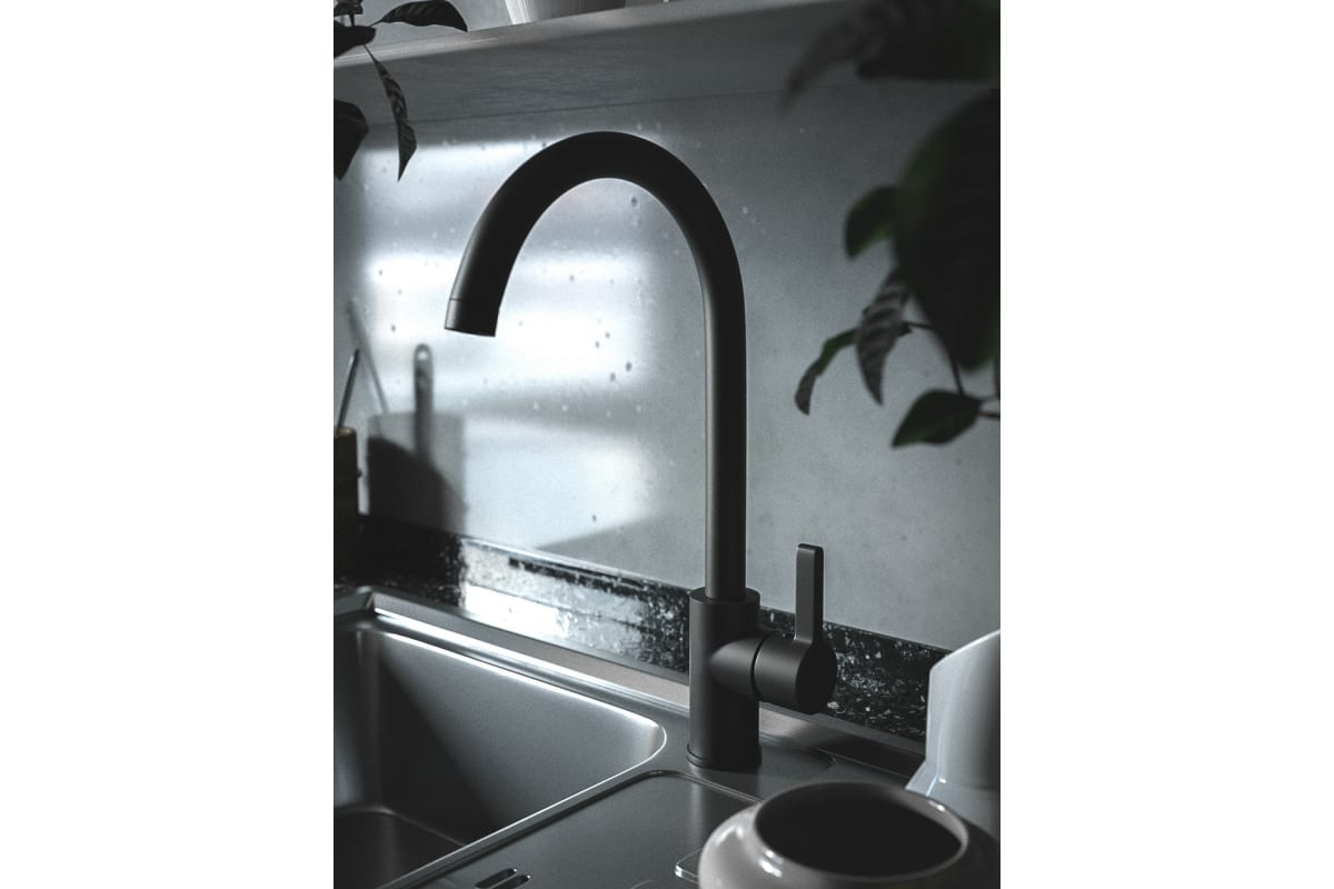 Смеситель для кухни KONNER STICK с высоким поворотным изливом, черный STK1200BK