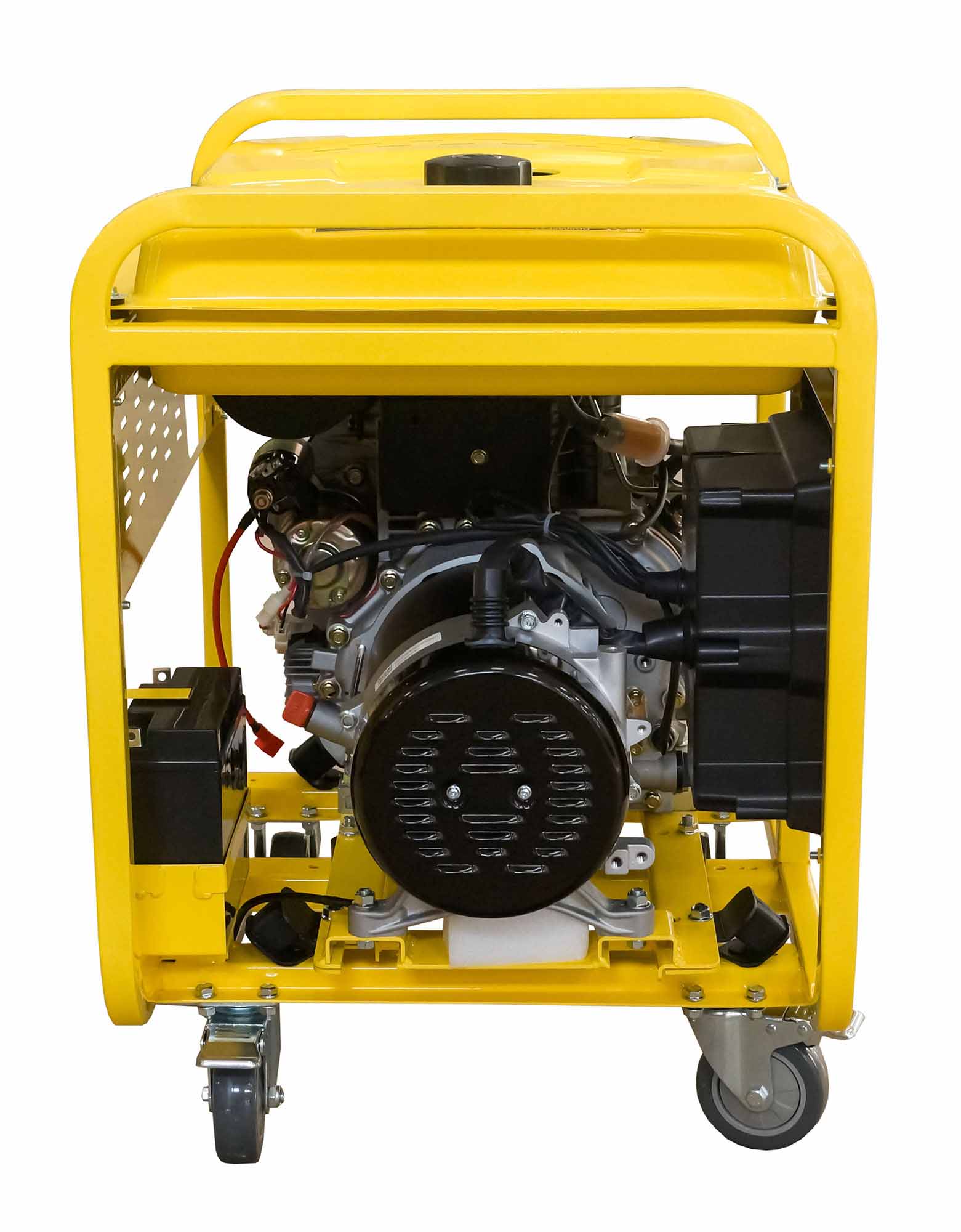 Особенности и преимущества: - Наличие прочных колес значительно облегчает процесс перемещения. Упрощает работу на строительных площадках и объемных производствах. - Прочная рама защищает от вибраций, деформаций и повреждений. - Цифровой счетчик для просмотра показаний. - Конструкция ручного стартера обеспечивает эффективное охлаждение. - Продвинутая система охлаждения поддерживает низкую рабочую температуру генератора. - Большой топливный бак позволит продлить время непрерывной работы. - Обновленная конструкция глушителя снижает уровень шума. - Медная обмотка альтернатора двигателя обеспечит повышенный ресурс работы. - Синхронный альтернатор гарантирует стабильное напряжение. - Электростартер для легкого запуска генератора.