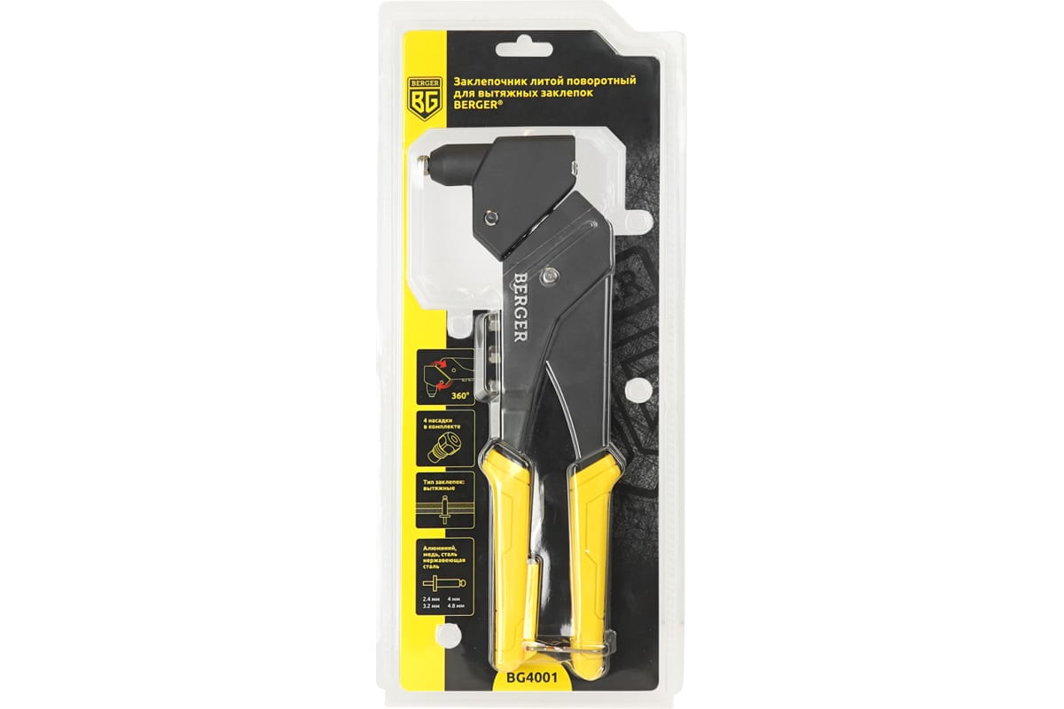Заклепочник для вытяжных заклепок Berger BG литой, усиленный, поворотный на 360 градусов BG4001