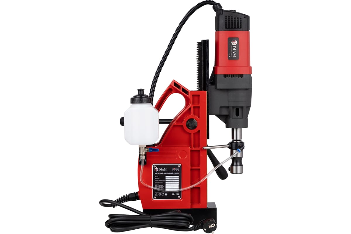 Транспортировочная ручка, расположенная на стойке обеспечивает легкое перемещение сверлильной машины. Станки снабжены предохранителями. Встроенная система охлаждения при работе подает СОЖ в автоматическом режиме при использовании штифта-выталкивателя. Большой рабочий ход станка позволит с легкостью менять корончатые сверла и упростит центрирование отверстия.