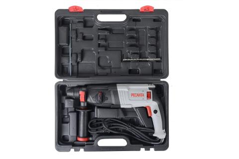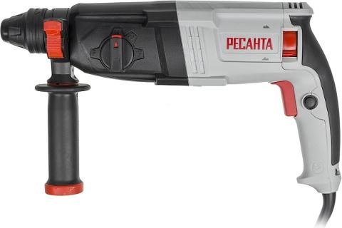 При мощности 900 Вт перфоратор обладает высокой ударной энергией 4,3 Дж и частотой ударов до 5200 уд./мин. Скорость вращения патрона в режиме сверления достигает 1100 об./мин, регулируются силой нажатия на кнопку включения. Рядом с ней расположена кнопка реверса, меняющая направление вращения на противоположное. Для установки в патрон подходят сверла, пики и буры с хвостовиком SDS-PLUS. В модели Ресанта П-30-900К установлена предохранительная муфта, она блокирует движение оснастки при заклинивании.