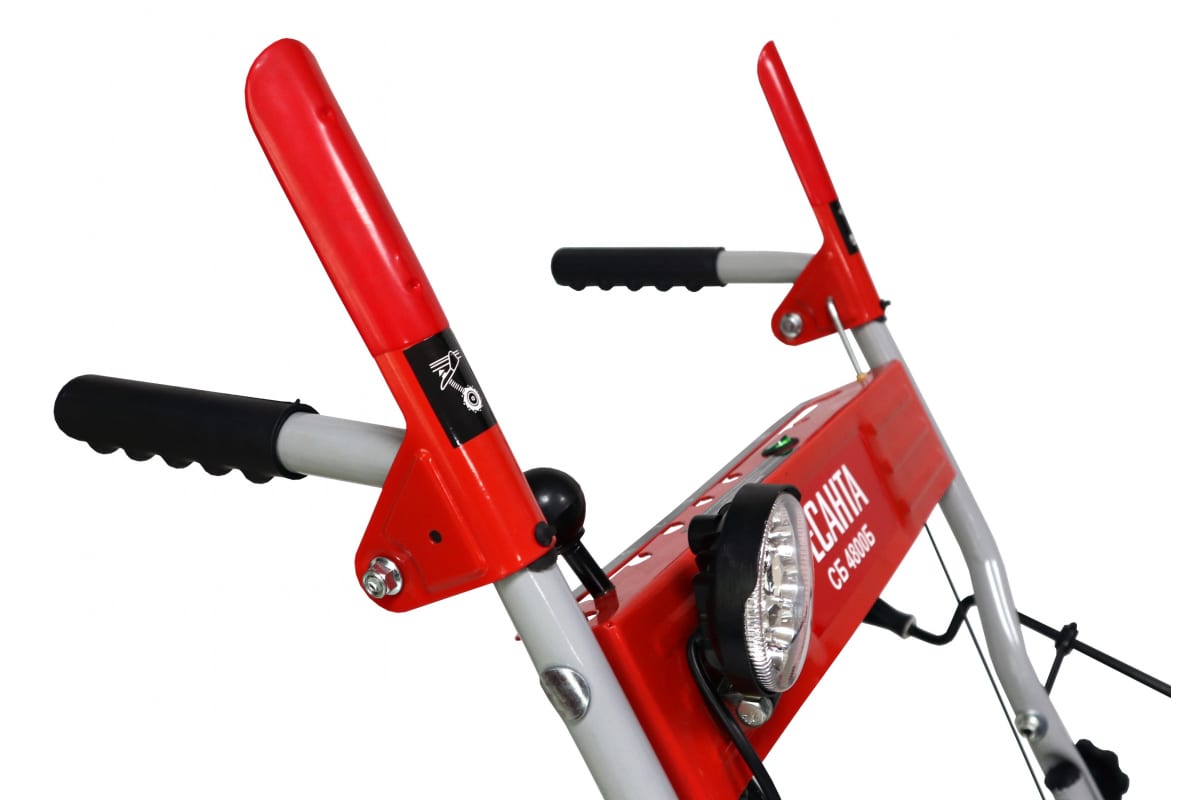 Вес Ресанты СБ 4800Б составляет 76 кг, но наличие больших надувных колес упрощает его перемещение, а выраженный протектор обеспечивает хорошее сцепление. Наличие прочного шнека позволяет убирать не только свежевыпавший, но и слежавшийся снег. Шнек крепится при помощи специальных шплинтов. В случае попадания постороннего предмета, например, камня, срезаются штифты, а не нож. Такие особенности конструкции обеспечивают долговечность и простоту обслуживания, поскольку шплинты можно легко заменить при необходимости.