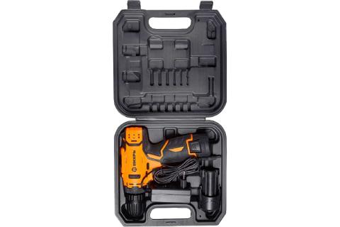 Дрель-шуруповерт ВИХРЬ ДА-12Л-2КА является базовой моделью с литий-ионным аккумулятором. Обеспечивает свободу передвижения при решении простых бытовых задач. Две сменные аккумуляторные батареи емкостью 1,5 А*ч позволяют работать без перерыва на перезарядку. Ручной инструмент поставляется в пластиковом кейсе с запасной батареей и зарядным устройством.
