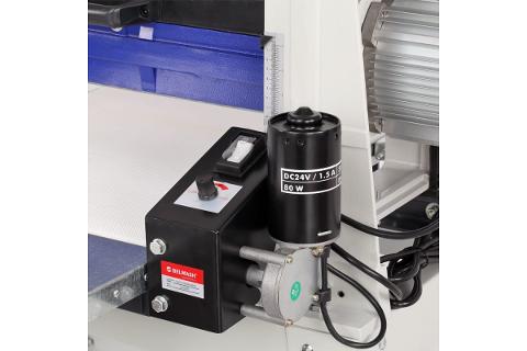 Автоматическая транспортная лента обеспечивает равномерную подачу заготовок в рабочую зону. Скорость движения можно регулировать в диапазоне от 0 до 3.5 метров в минуту. Это позволяет значительно облегчить и обезопасить работу пользователя на станке. Лента оборудована отдельным коллекторным электродвигателем мощностью 80 Вт.