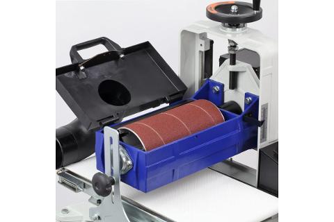 Рабочий барабан имеет диаметр 132 мм и длину 260 мм, на него намотана абразивная лента.
