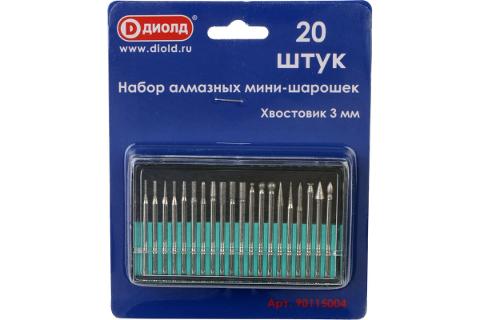 Набор мини-шарошек алмазных 20 шт, хвостовик 3 мм ДИОЛД (90115004)