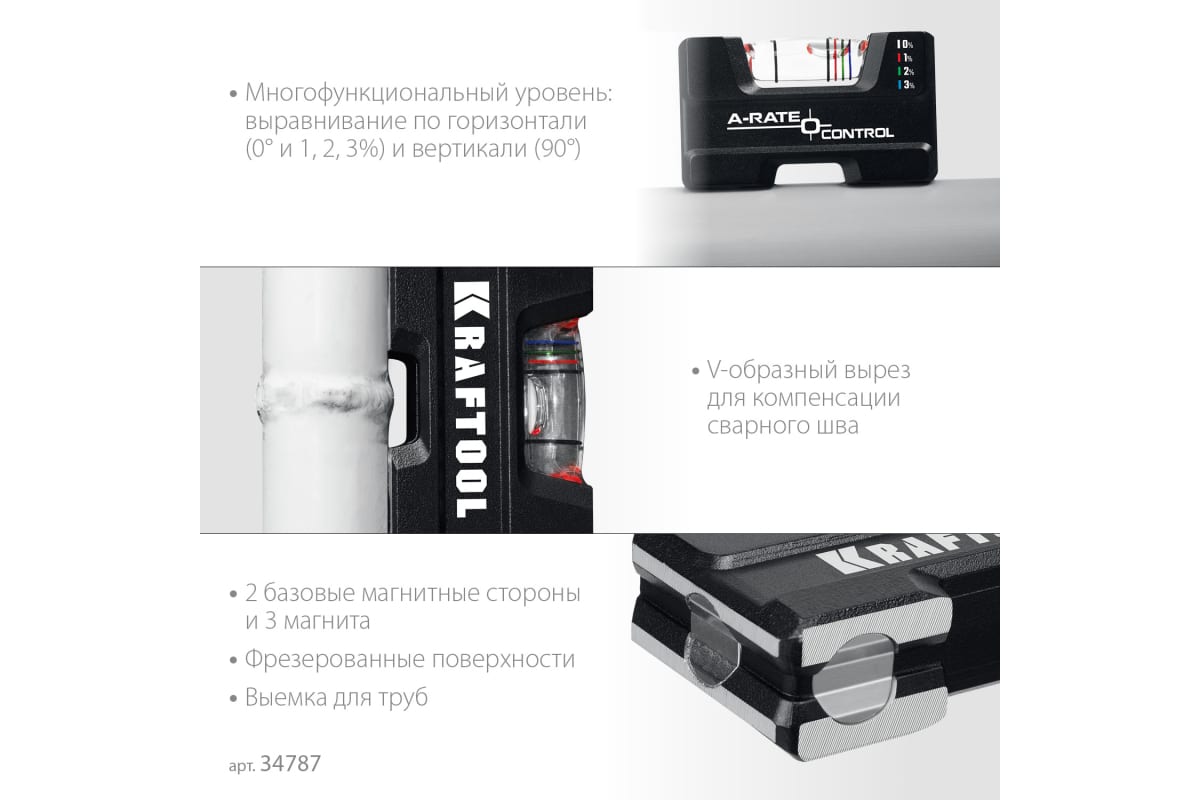 Компактный литой магнитный уровень KRAFTOOL 5-в-1 76 мм (34787)