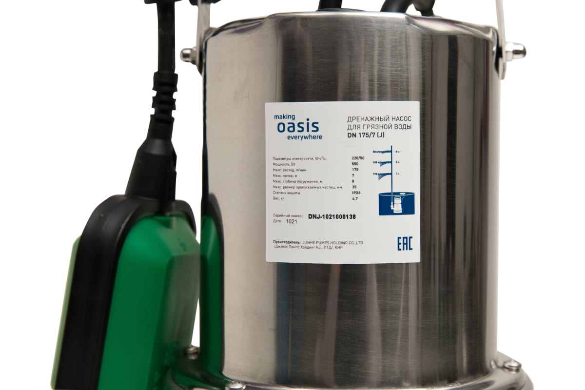• Дренажный насос для грязной воды Oasis 175/7 4670004376928 подходит для эксплуатации на даче.