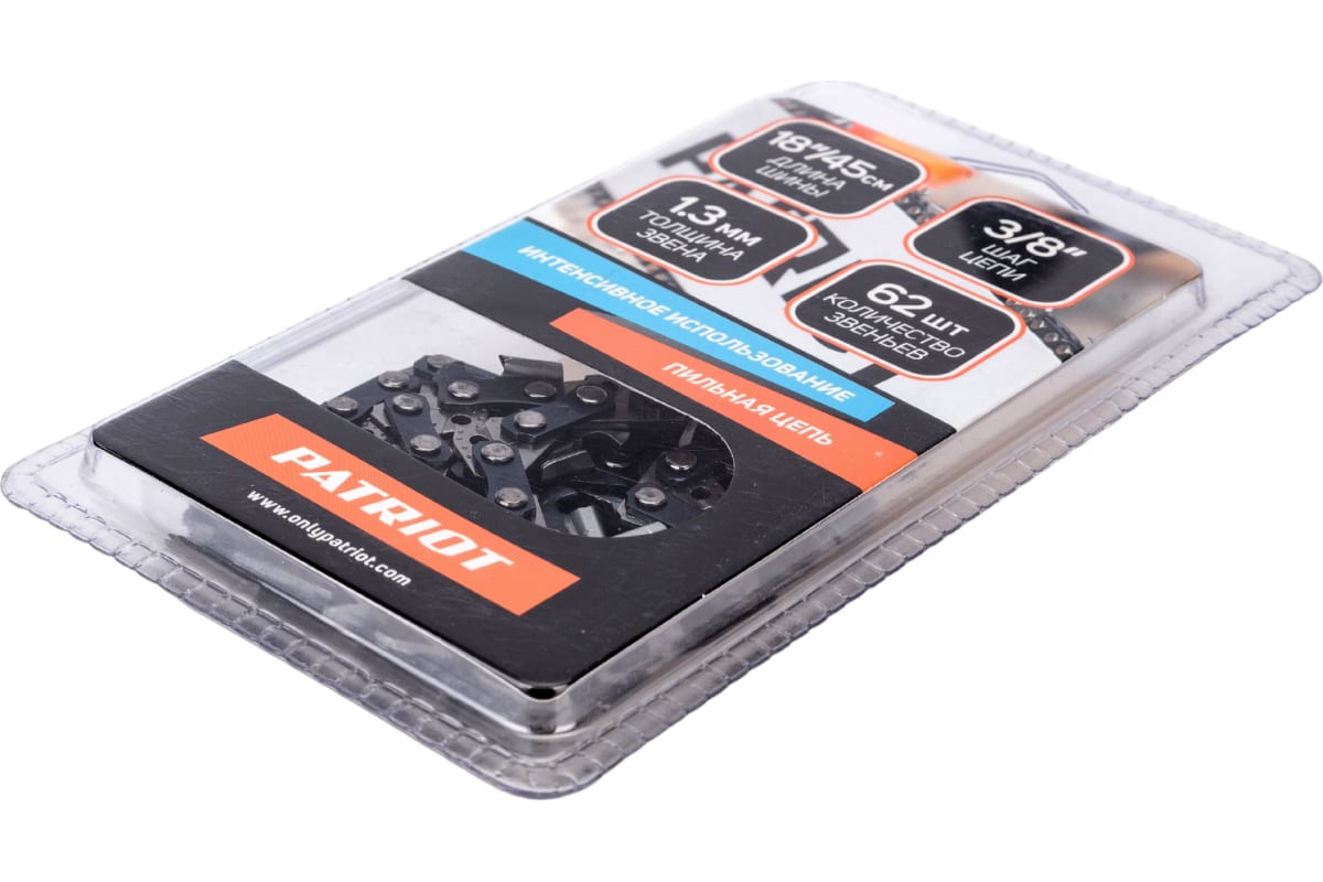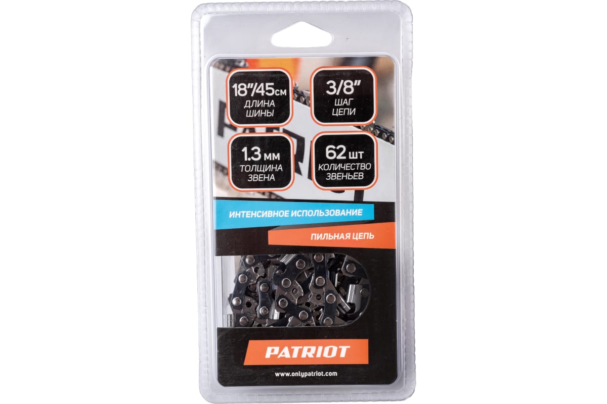 • Цепь (3/8"; 1.3 мм; 62 звена) PATRIOT 862381362 предназначена к использованию с бензопилами.