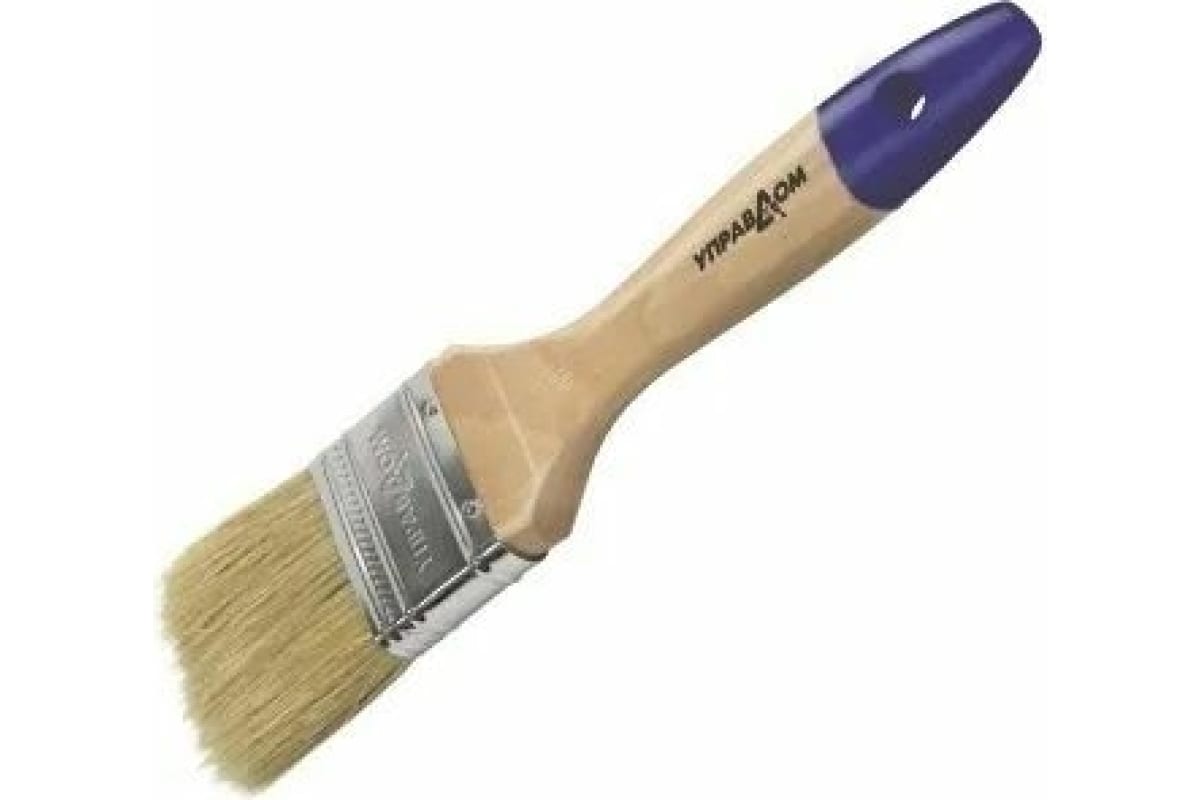 Плоская кисть Управдом 100 мм, светлая натуральная щетина, деревянная лакированная ручка 4100000567 подходит для нанесения всех видов лакокрасочных материалов.