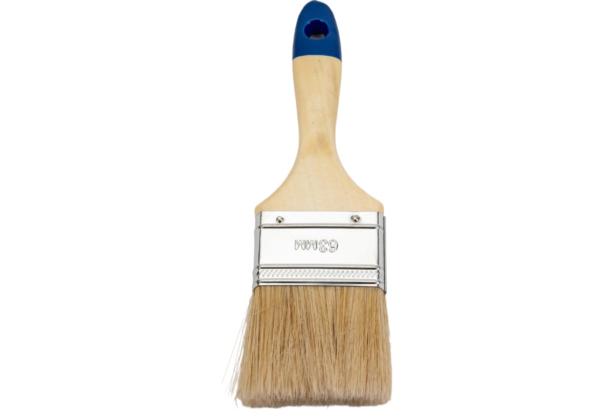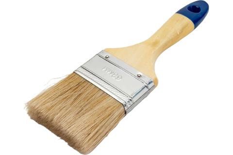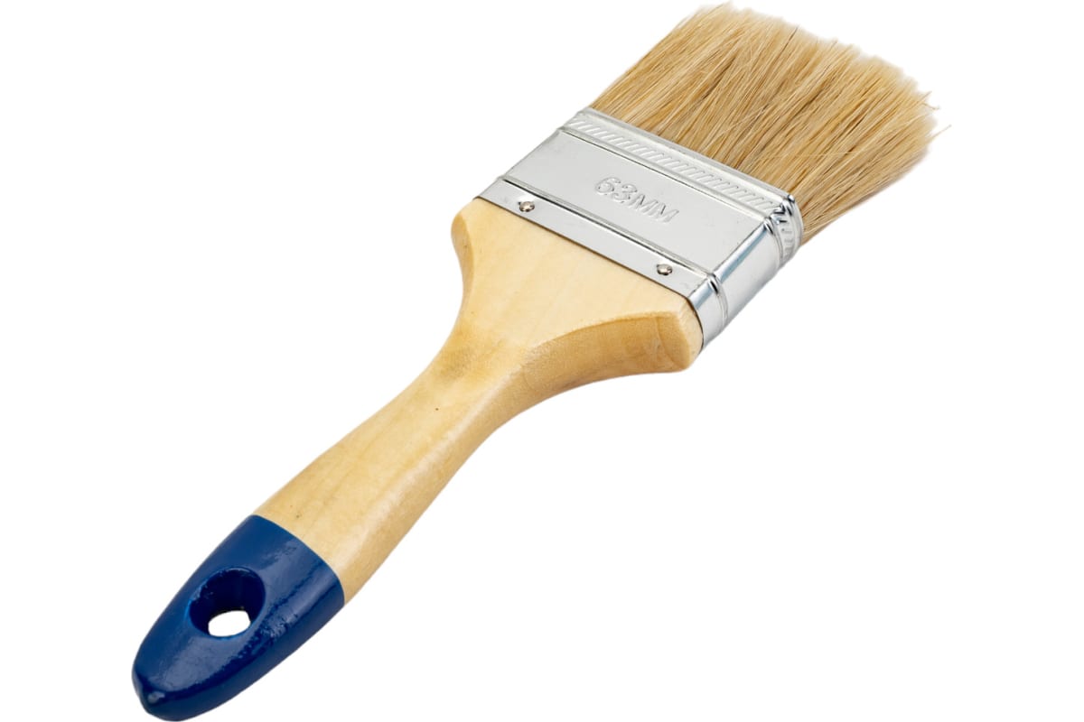 Плоская кисть Управдом 63 мм, светлая натуральная щетина, деревянная лакированная ручка 4100000565 подходит для нанесения всех видов лакокрасочных материалов.