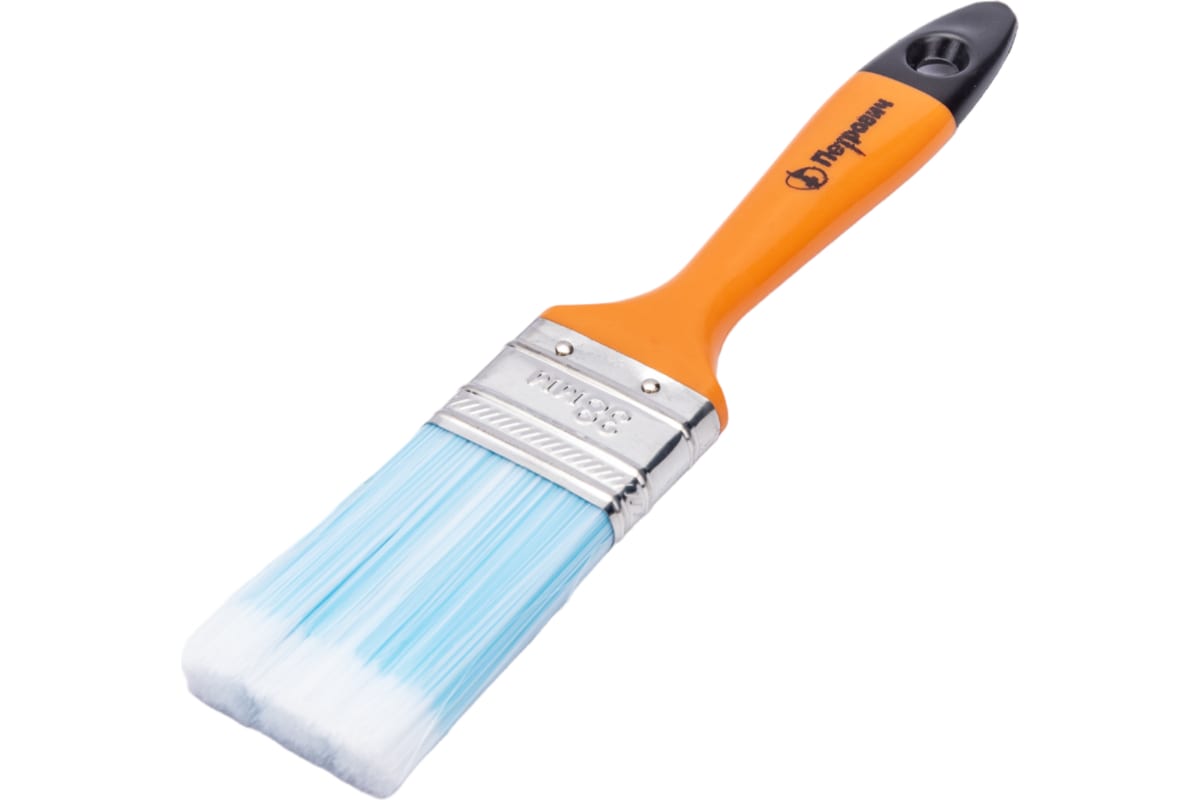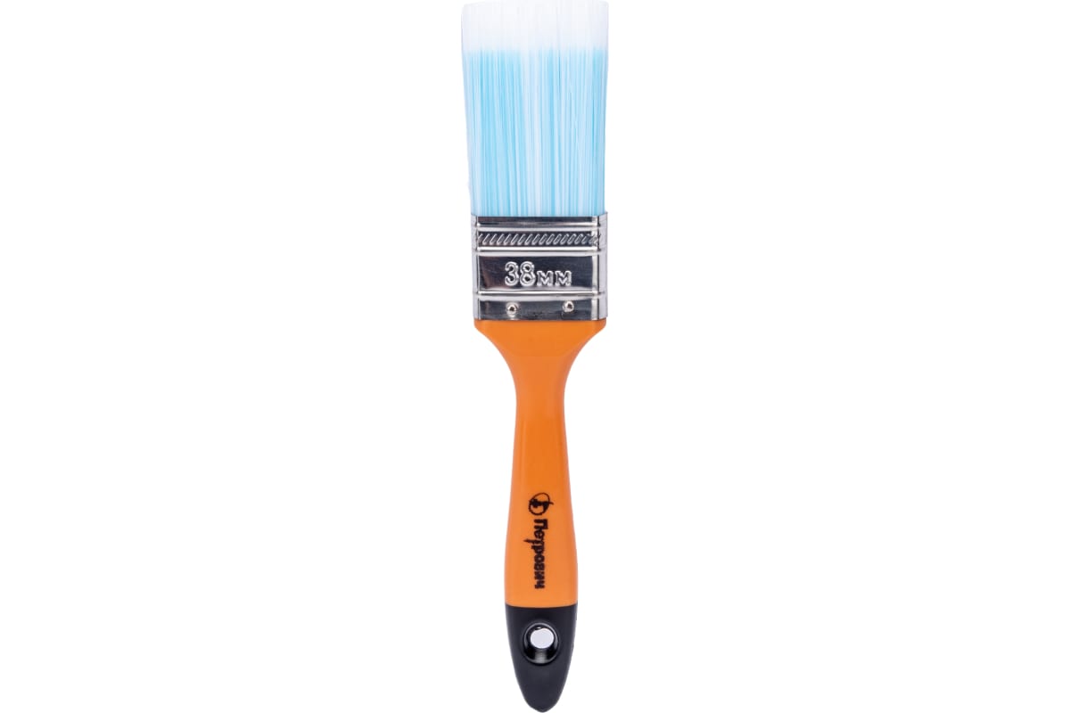 Плоская кисть Петрович 38 мм, искусственная щетина, пластиковая рукоятка 4100002399 предназначена для окрашивания поверхностей акриловыми и водно-дисперсионными ЛКМ.