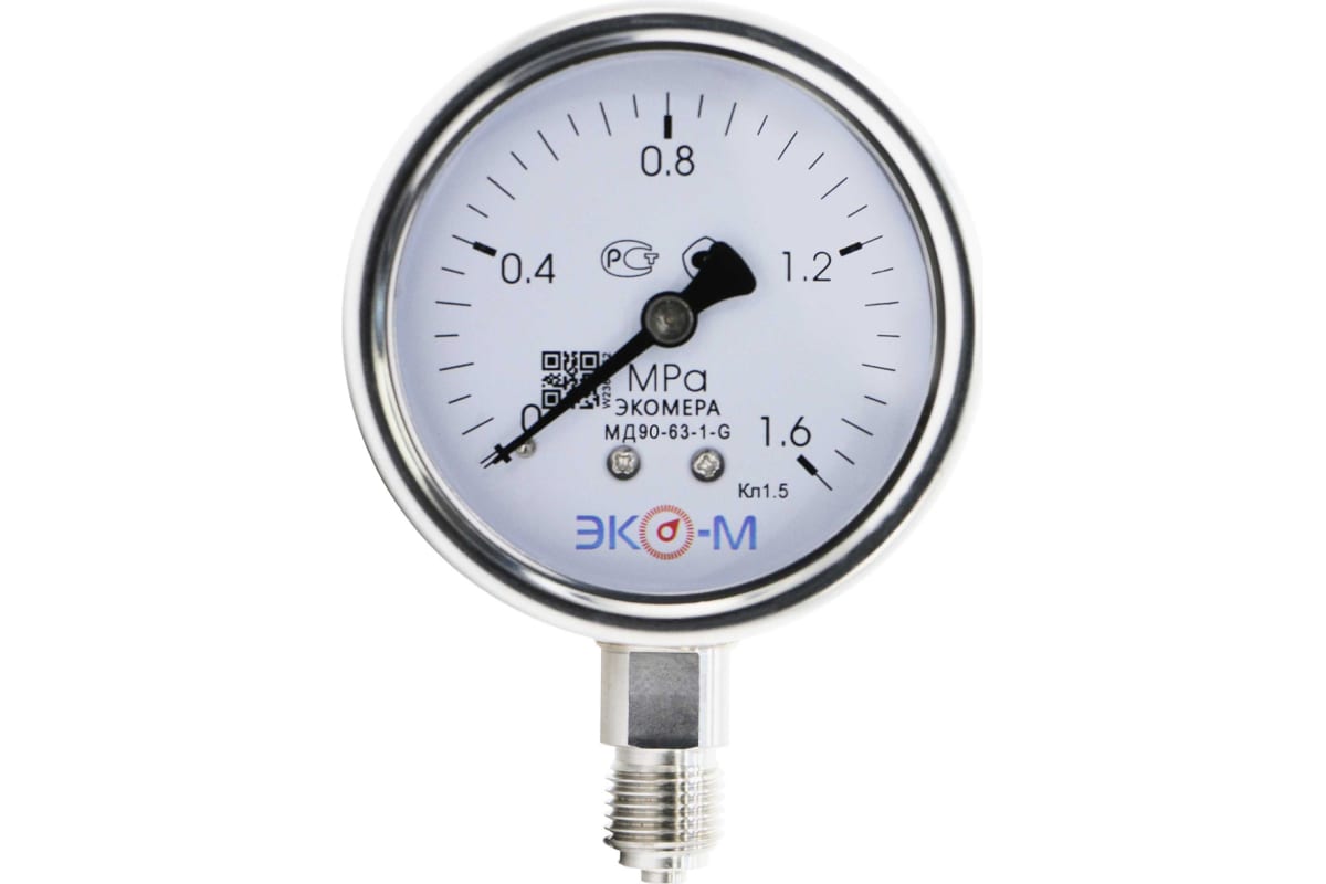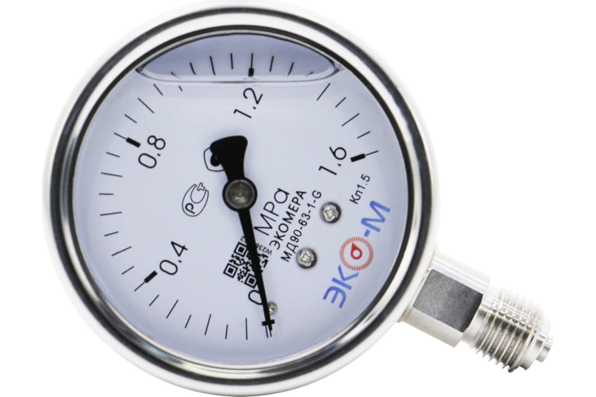 Манометр Экомера ЭКО-М мд90-63мм, 0..1,6мпа, g1/4, гидрозаполненный МД90-63-G-1,6МПа