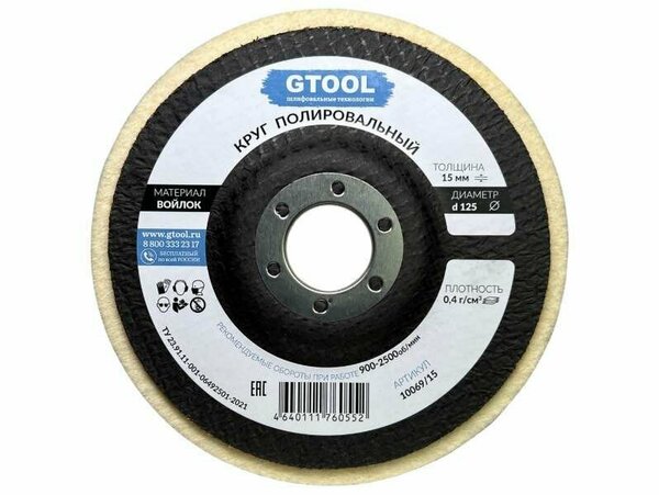 Круг полировальный войлочный Ø 125х15х22/2 0,4г/см3 Gtool (10069/15)