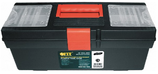 Подвижный лоток и два встроенных органайзера на крышке позволяют разместить необходимые инструменты и аксессуары. Большая пластиковая защелка надежно защищает ящик от непреднамеренного открывания.