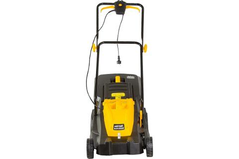 Травосборник электрической газонокосилки выполнен из прочного пластика и способен вместить до 45 литров скошенной травы, что сокращает количество перерывов для его освобождения. Колеса позволяют без усилий перемещать устройство по любой поверхности. Компактные размеры и вес 13,5 кг обеспечивают удобство в использовании и хранении.