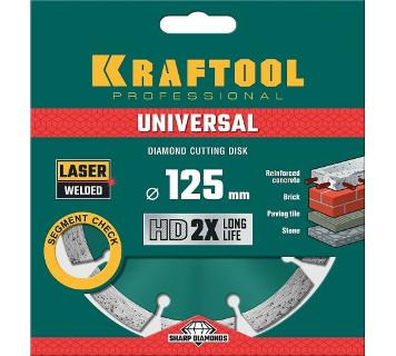 Диск алмазный сегментный Universal KRAFTOOL 36680-125 предназначен для резки бетона и железобетона с помощью угловой шлифовальной машины.
