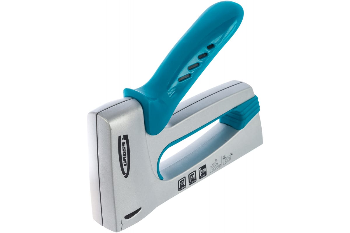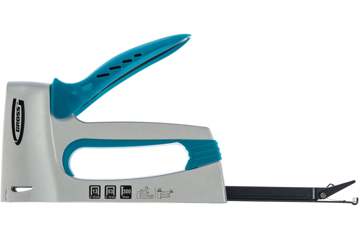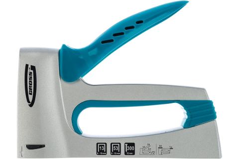 • Мебельный степлер GROSS 41001 выполнен из прочного алюминиевого сплава. Изготовлен методом литья. Конструкция позволяет быстро загружать скобы в скобоприемник.