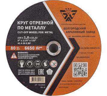 Круг отрезной для металла Ø 230х1,8х22,23 мм БАЗ (00-00253516)