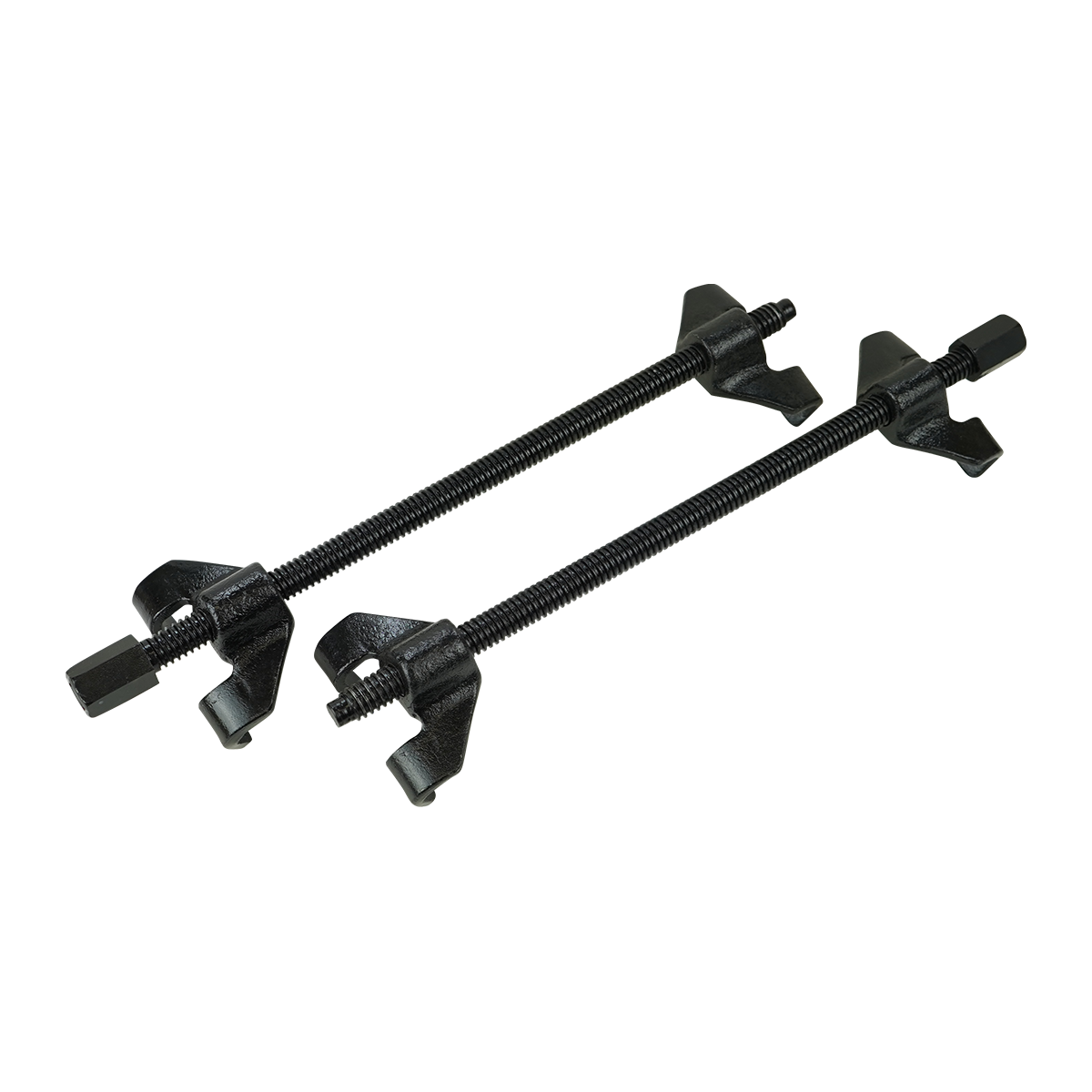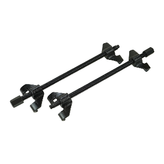 Стяжки пружин представляют собой специализированный съёмно-демонтажный инструмент для ремонта и обслуживания транспортных средств. Предназначены для сжатия опорных пружин автомобильной подвески при их установке и демонтаже. Снабжены кованными двойными скользящими захватами с широкими контактными поверхностями, установленными под углом, обеспечивающим наилучшую фиксацию пружин различных диаметров. Силовой винт с усиленной трапециедальной резьбой имеет шестигранный привод под ключ и квадрат под вороток 1/2″. Входящие в комплект стальные шайбы предназначены для уменьшения силы трения между головкой винта и захватом. Поверхность стяжек обработана фосфатированием для защиты от коррозии. Имеют компактный размер и небольшой вес, обеспечивающие удобство хранения и применения. Стяжки применяются парами и устанавливаются с двух сторон сжимаемой пружины, что обеспечивает надёжную фиксацию в четырёх точках опоры. Совместимы как с большинством стандартных подвесок, так и с подвесками типа “МакФерсон”. Применяются в автомастерских и автосервисах во время технического обслуживания транспортных средств. Набор исключительно прост в использовании.