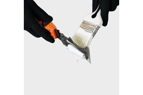 • Многофункциональный инструмент штукатура-маляра предназначен для очистки валиков и кистей от краски, откручивания болтов и вскрытия банок.
