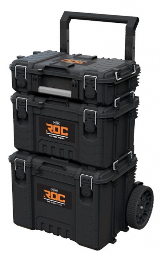 Модульная система оснащена надежными профессиональными функциями для работы на рабочей площадке или в мастерской. Система ROC Pro Gear позволяет взять ящик, выполнения поставленной задачи, легко транспортировать с помощью 9-дюймовых колес и заменять базовые узлы. Внутренние органайзеры позволяют держать организованном порядке. Система имеет класс защиты IP65. С новой тележкой Pro Gear Cart, которая имеет полностью съемную колесную базу и телескопическую ручку, вы можете полностью отделить свой ящик для инструментов XL от телескопической ручки на колесах для облегчения транспортировки. Вы также можете заменить базовый блок всего за несколько секунд. Эта готовая к перемещениям тележка оснащена 9-дюймовыми колесами и совместима с ящиками для инструментов KETER ROC Pro Gear 2 XL.