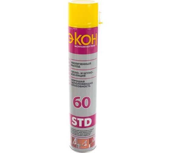 Пена монтажная 700 мл Экон имеет бежевый цвет и является однокомпонентной влагоотверждаемой полиуретановой пеной с закрытыми порами.