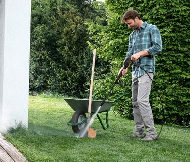 Будь то ступени, покрытые мхом, стены или грязный садовый инвентарь, мойка высокого давления K 2 Universal Edition с грязевой фрезой мгновенно справится с загрязнениями.