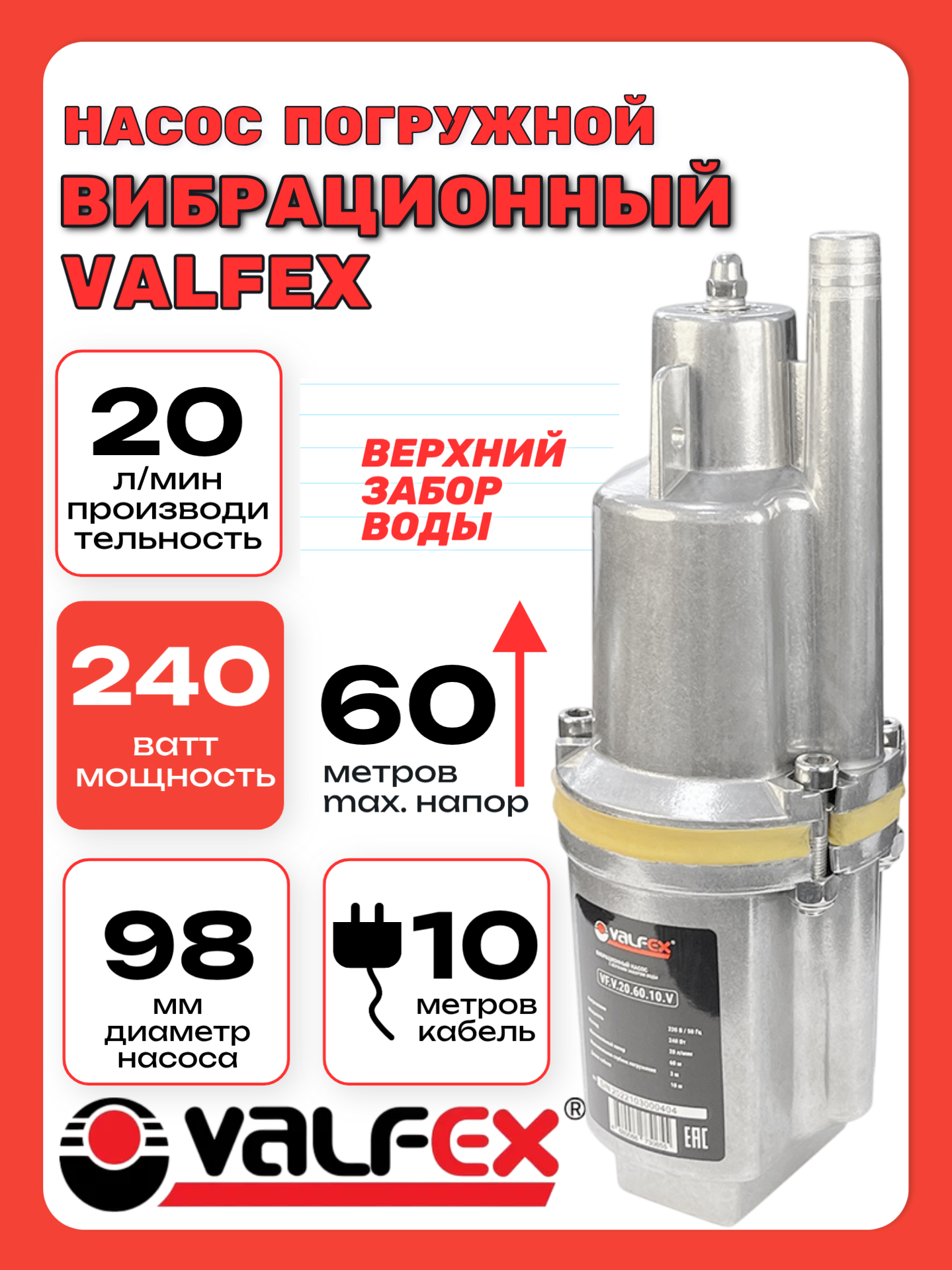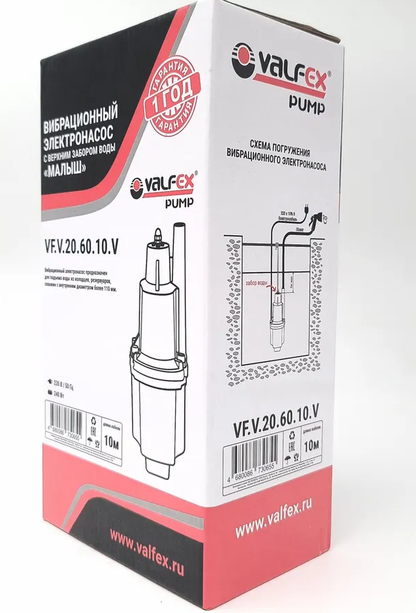 Насос погружной вибрационный верхний забор VALFEX 20/60 -10м (VF.V.20.60.10.V)