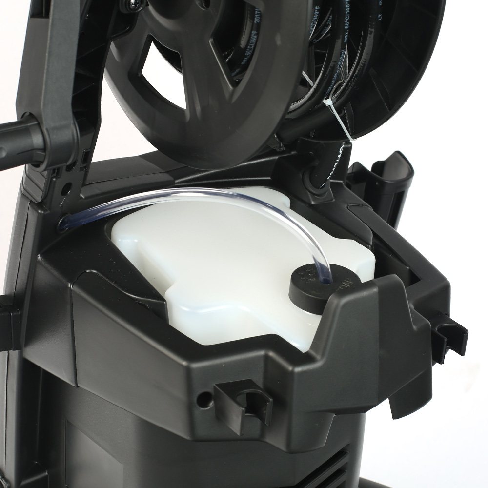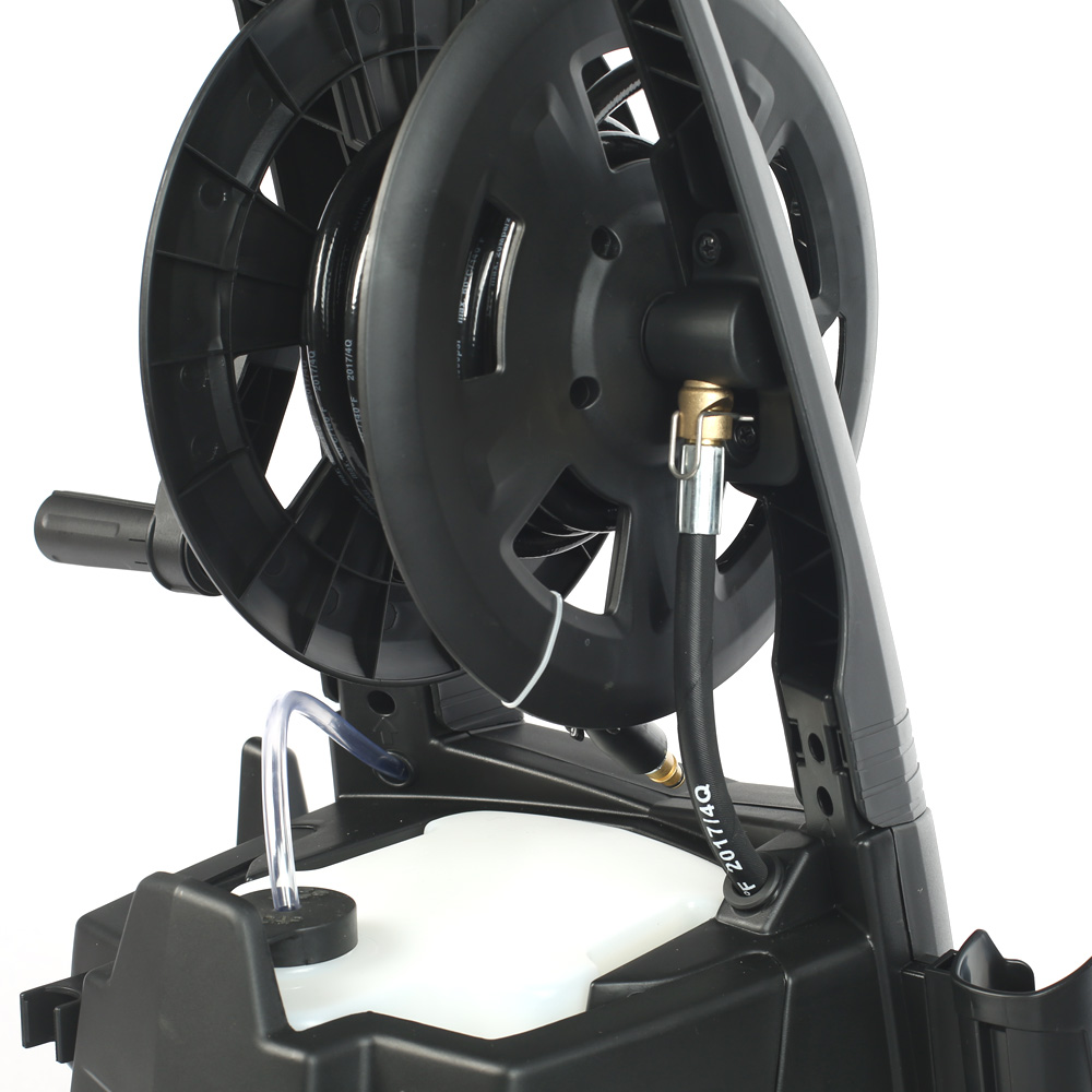 Он снабжен самовсасывающим насосом, который позволяет агрегату подключаться к водопроводным сетям и внешним источникам воды.