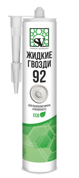 Клей жидкие гвозди SV92 - готовый к применению специализированный клей для крепления различных отделочных материалов без сверления, использования шурупов, гвоздей и дюбелей. Для наружных и внутренних работ в бытовых и промышленных условиях. Не токсичен, пожаровзрывобезопасен.