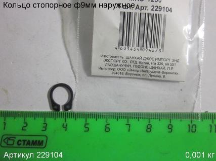 Кольцо стопорное ф 9мм наружн. МПЭ-1250 [229104]