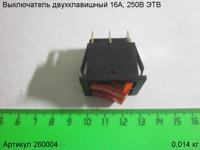 Выключатель двухклавишный 16А, 250В ЭТВ [260004]