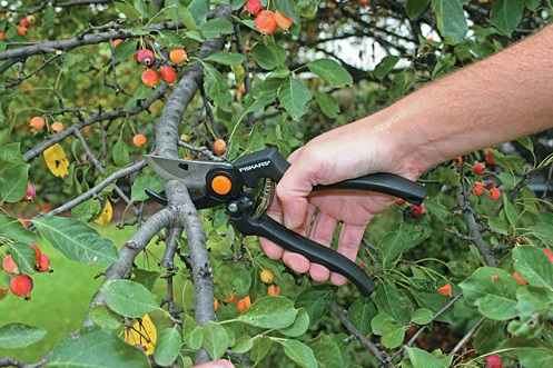 • У секатора очень удобные ручки. Механизм блокировки исключает возможность получения травмы вне работы.