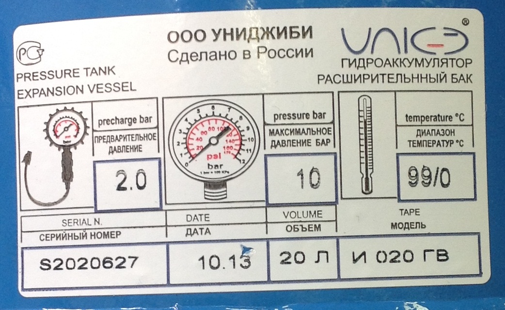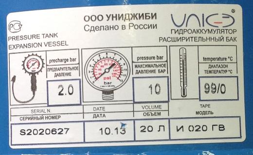 Гидроаккумулятор Униджиби 20л вертикальный (И020ГВ)