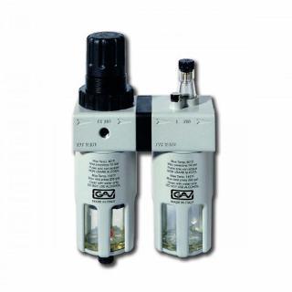 Фильтр регулятор-лубрикатор FRL-200 GAV предназначен для очистки от влаги и пыли сжатого воздуха, поступающего от компрессора к пневмоинструменту и одновременного насыщения парами масла воздуха подаваемого в пневмоинструмент, с целью смазывания трущихся деталей.