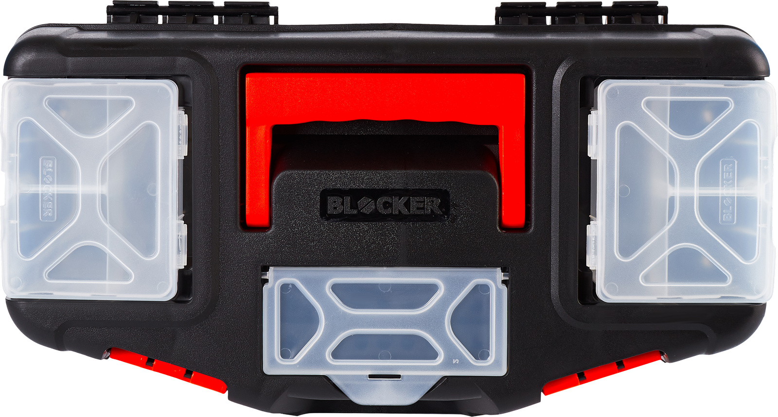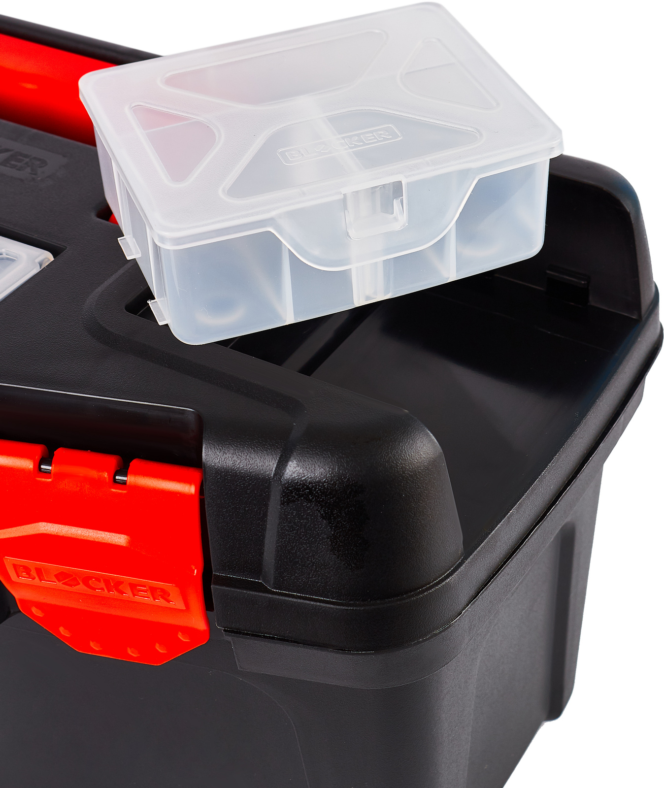 Чёрный-оранжевый ящик для инструментов 16 BLOCKER Master BR6004 обладает большой вместимостью, которая позволяет расположить внутри необходимое количество ручного инструмента.