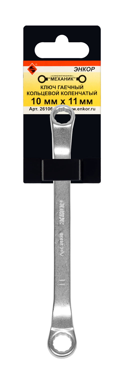 Гаечный кольцевой коленчатый ключ 10х11мм Энкор (26106)