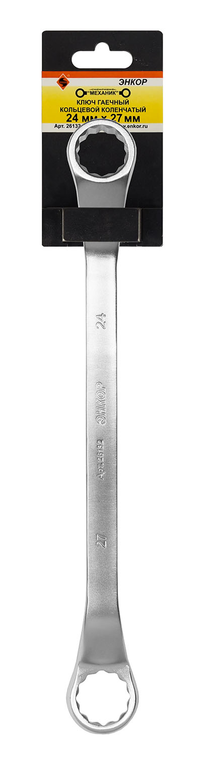 Гаечный кольцевой коленчатый ключ 24х27мм Энкор (26132)