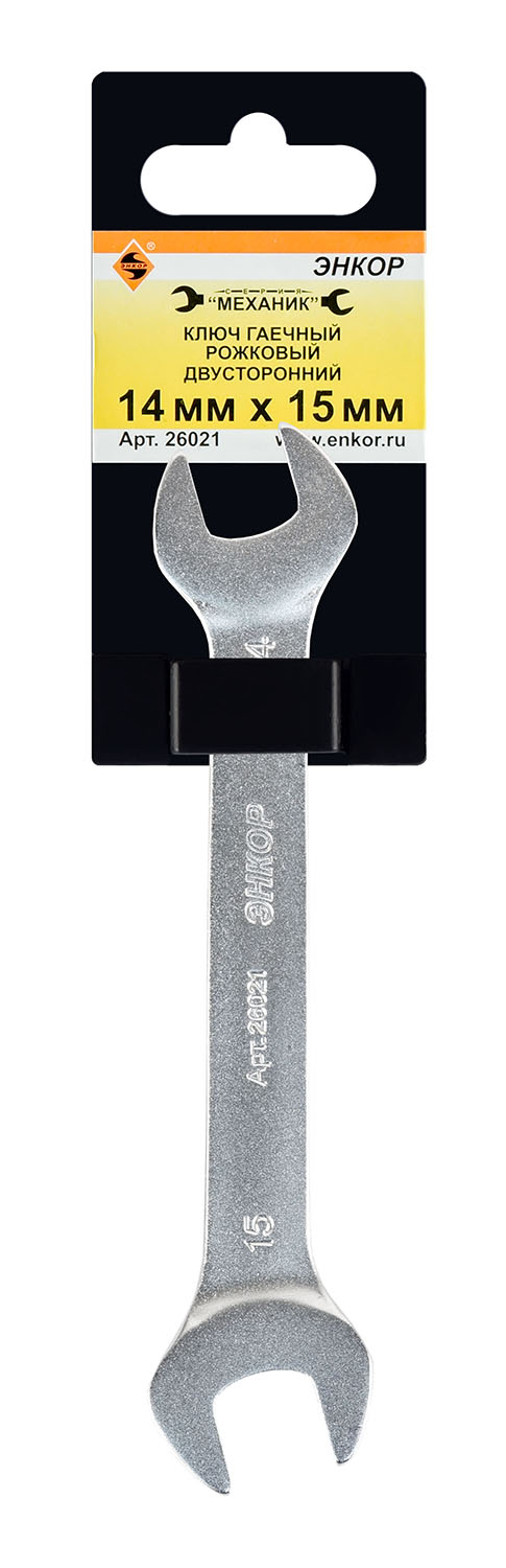 Гаечный рожковый двусторонний ключ 14х15мм Энкор 26021 может применяться как в бытовых условиях, так и в профессиональных мастерских и автосервисах для ремонта и обслуживания различных конструкций и агрегатов, где используется шестигранный профиль.