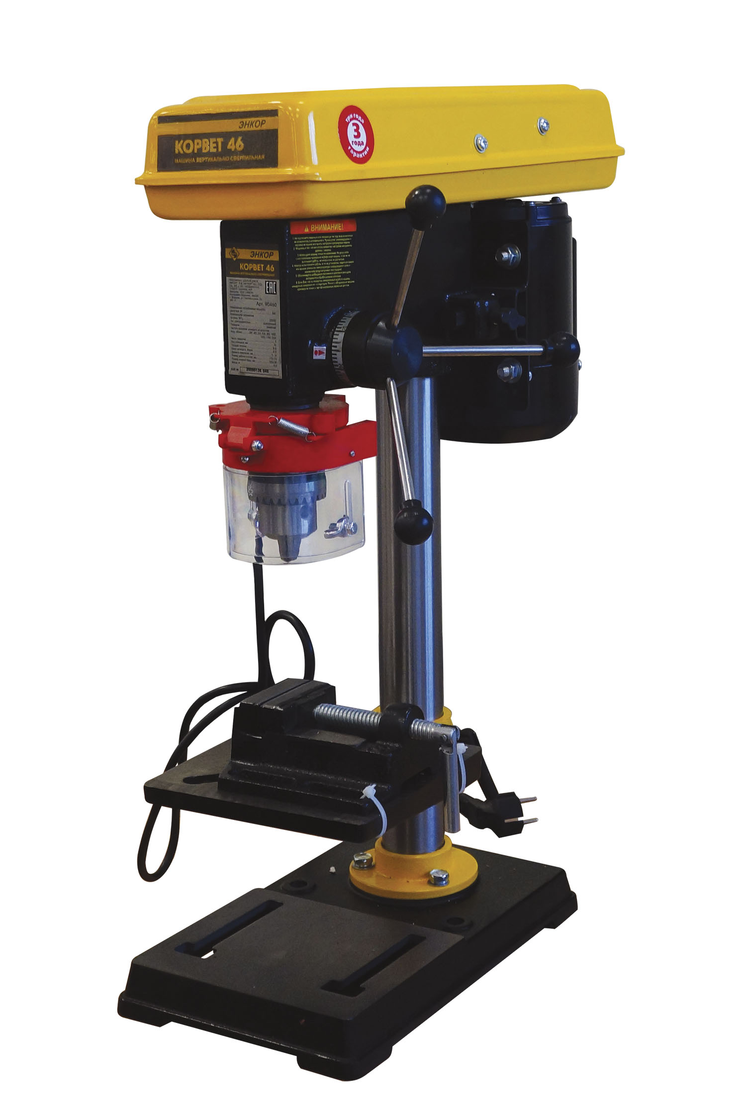 Прибор может эксплуатироваться в крупных мастерских и на производственных предприятиях, осуществляющих серийный выпуск продукции - его назначение включает возможность сверления металла на большую глубину, а также зенкерования, фрезерования и выполнения прочих операций, требующих установки дополнительного оборудования. Модель отличается максимальным удобством применения - сверлильный станок Энкор Корвет-46 с тисками может подвергаться регулированию скорости вращения шпинделя в очень широких пределах. Хорошие отзывы также помогает заслужить мощный двигатель и продвинутая ременная трансмиссия, существенно уменьшающая интенсивность шумов и вибраций. Наличие тисков дает возможность выполнять фиксирования сложных заготовок - таких, как трубы или металлические профили.