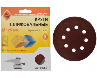 Шлифкруги Энкор для эксцентриковой шлифмашины Ø125 мм К 100 липучка, 5 шт. (20204)