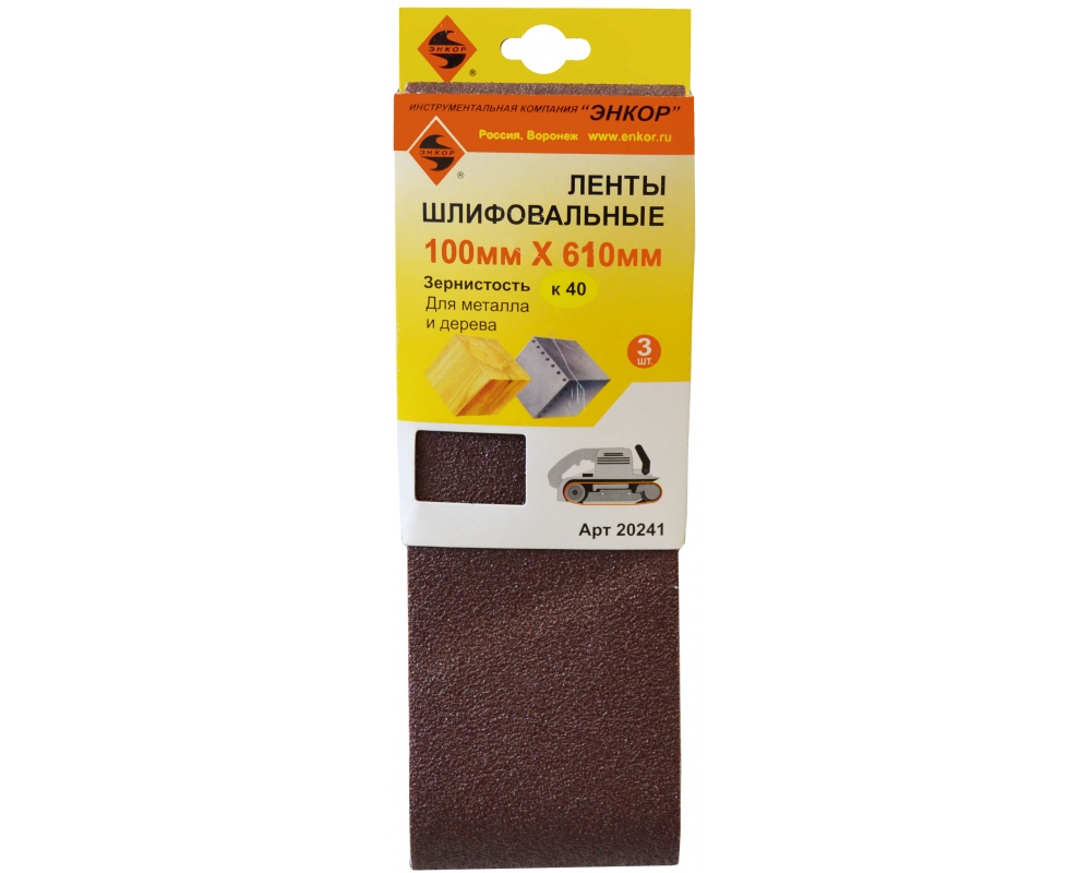 • Набор 3 шлифовальных лент 100х610 мм Энкор 20241 на основе тяжелой водонепроницаемой гибкой ткани, стойкой к разрыву.