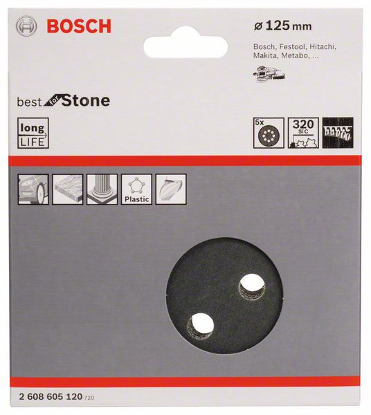 Шлифкруги липучка по камню (5 шт; 125 мм; 8 отв; К320) Bosch (2 608 605 120)
