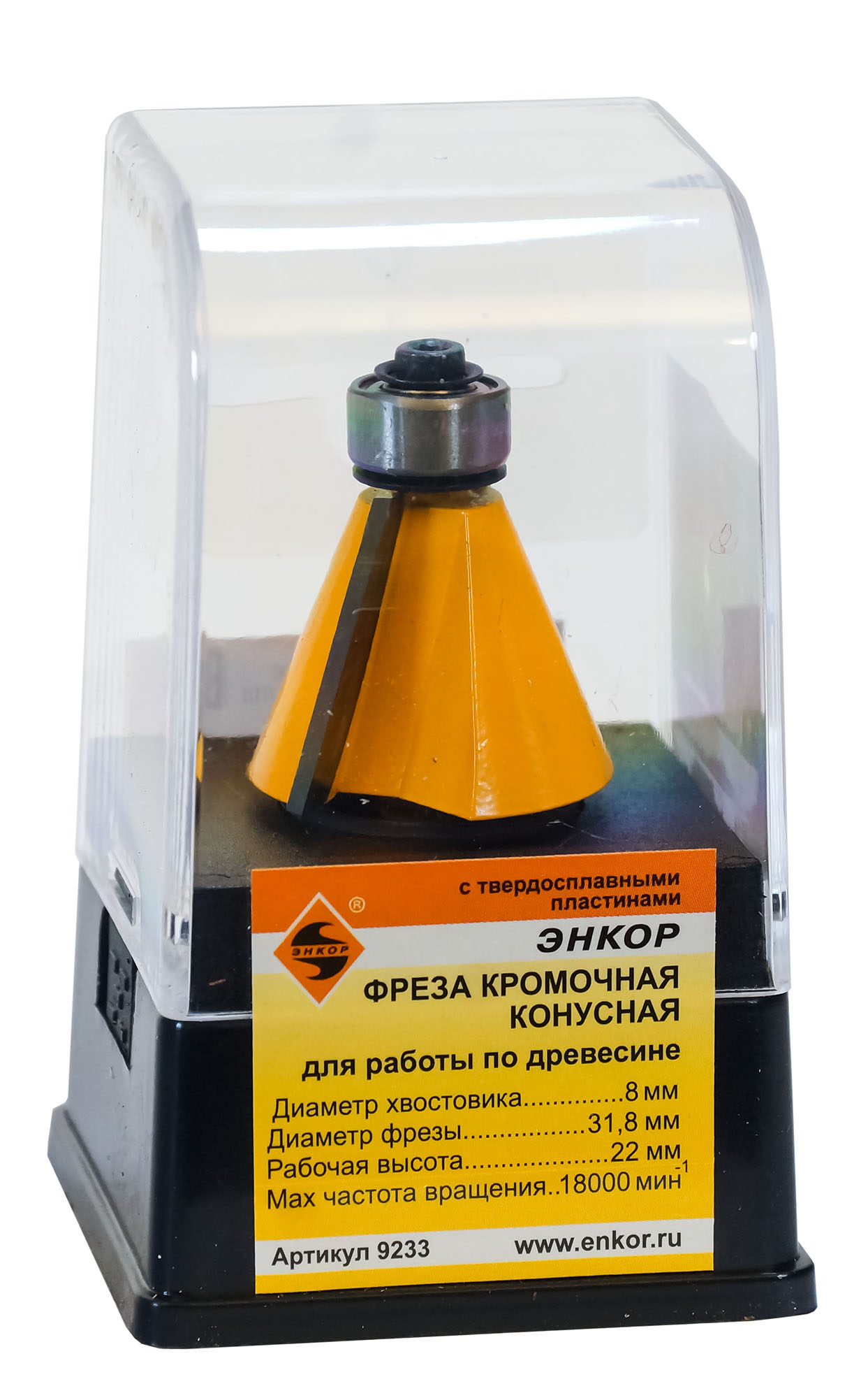 Фреза Энкор 9233 предназначена для выполнения фаски на кромках столярных изделий и декоративной обработки кромок столешниц, элементов корпусной мебели.
